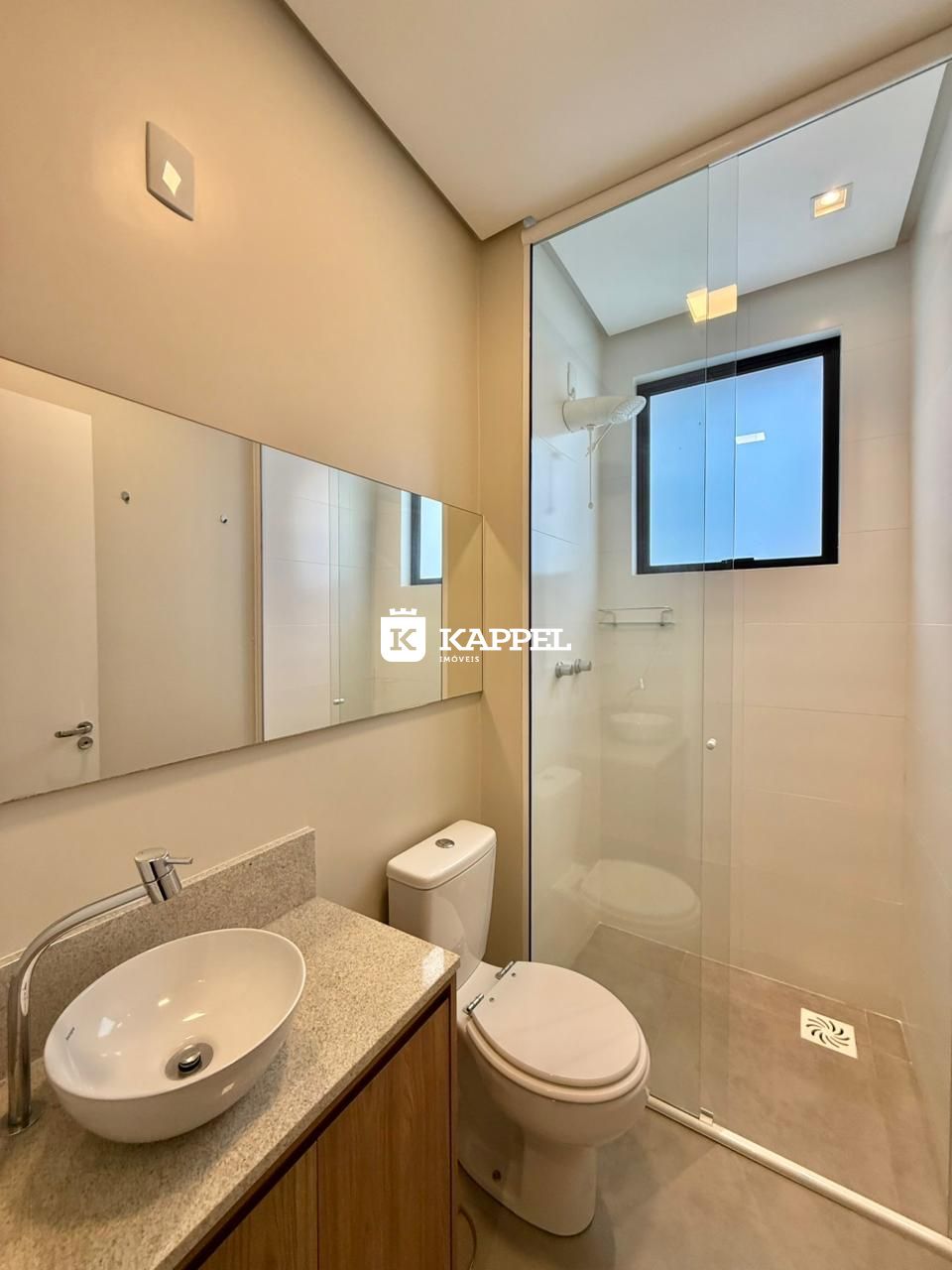 Além dos dormitórios internos, o apartamento conta com um banheiro social adicional, o que é muito conveniente para visitantes e para o dia a dia.